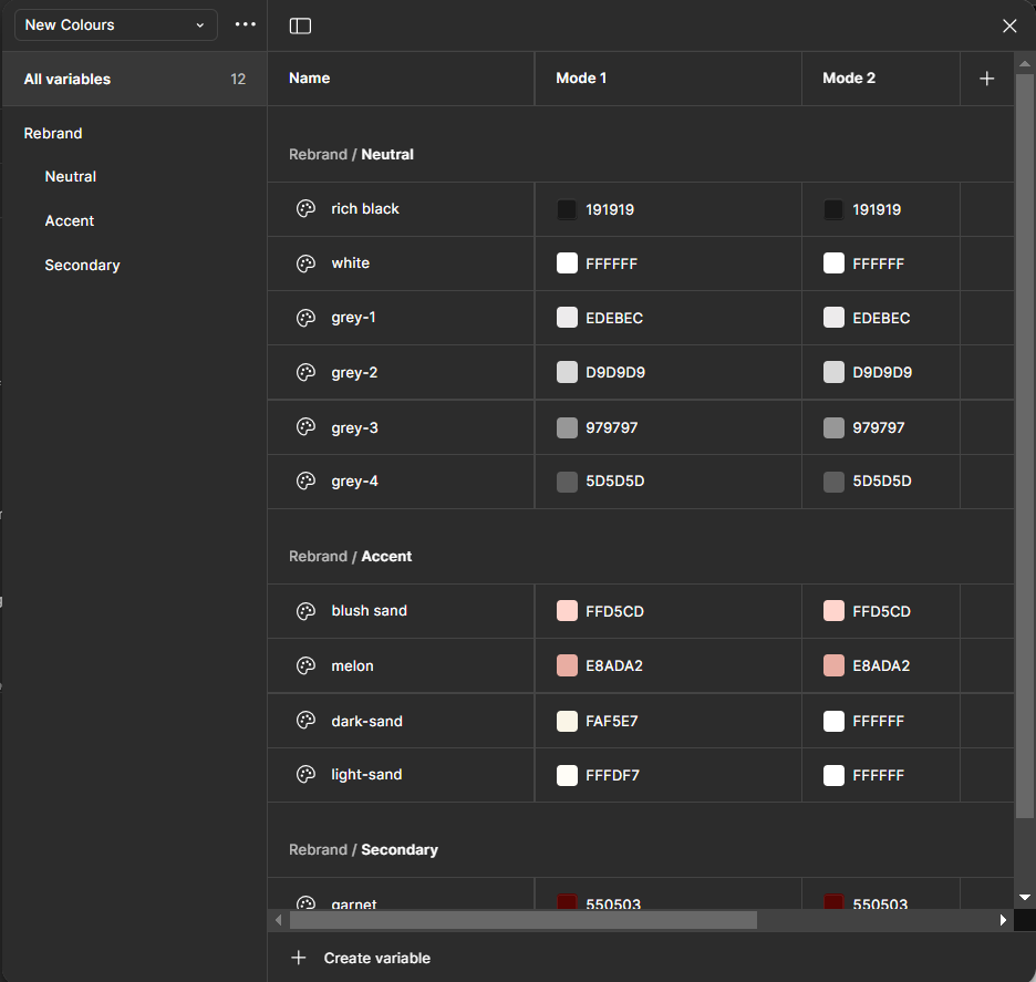 The new brand colours were to be added to the file as variables so that they can be easily organised and selected during the design process.