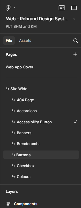 Instead of having the DS laid out so that all of the components are located on one page.  It made better sense to sperate the components out into individual pages so that there is a page in the DS for every major page or area on the live website. For example, All of the components and elements that would normally reside on the product page will have a page in the DS labelled ‘Product Page’